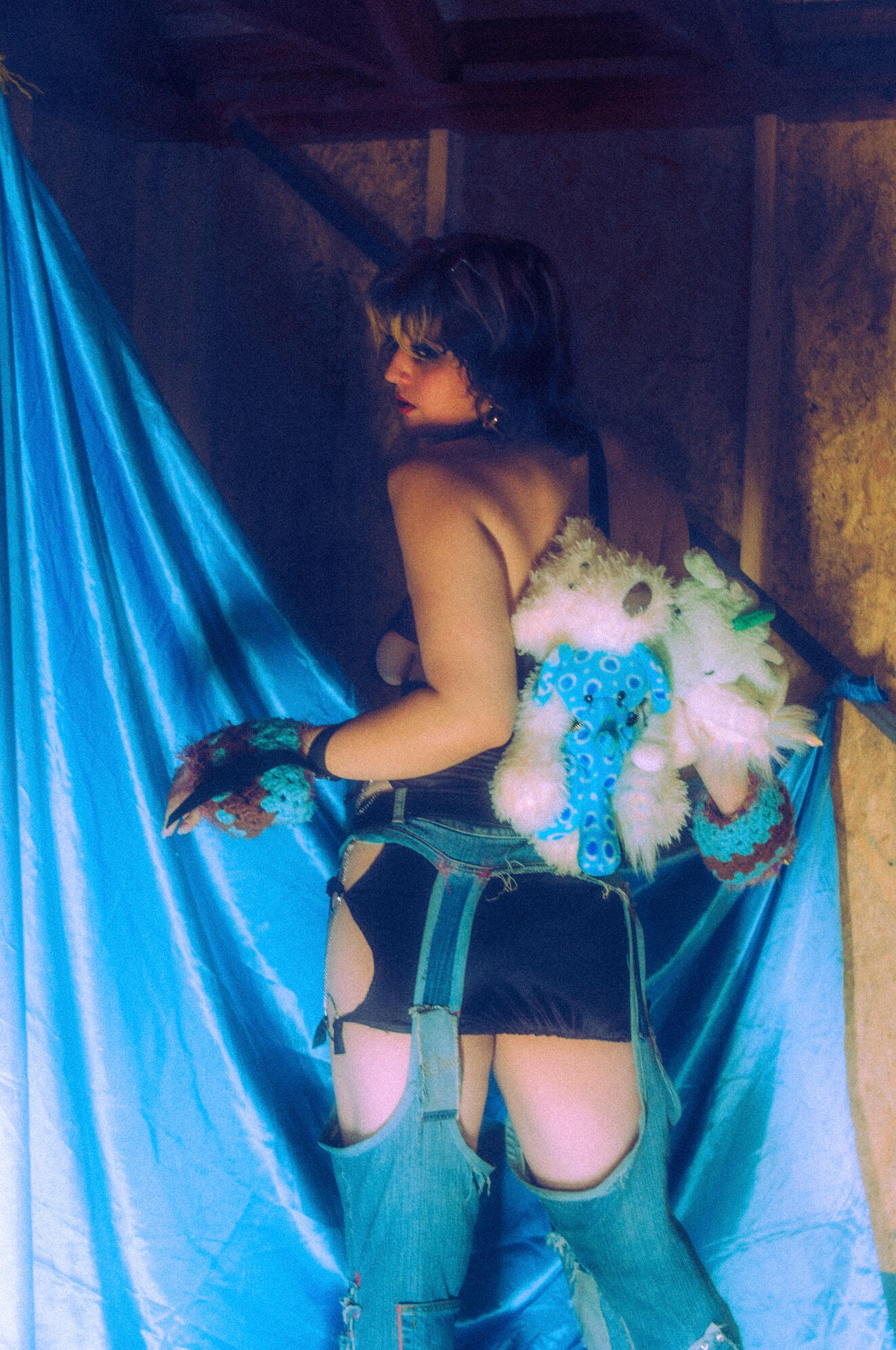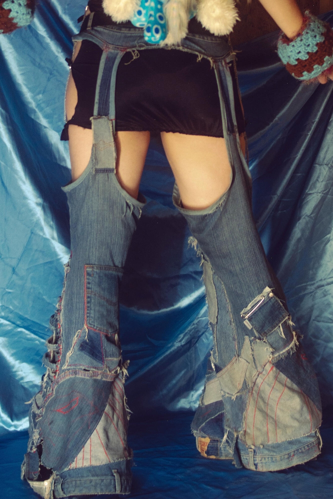 mean jean top and windows to the soul mermaid skirt and bomb pom handwarmers